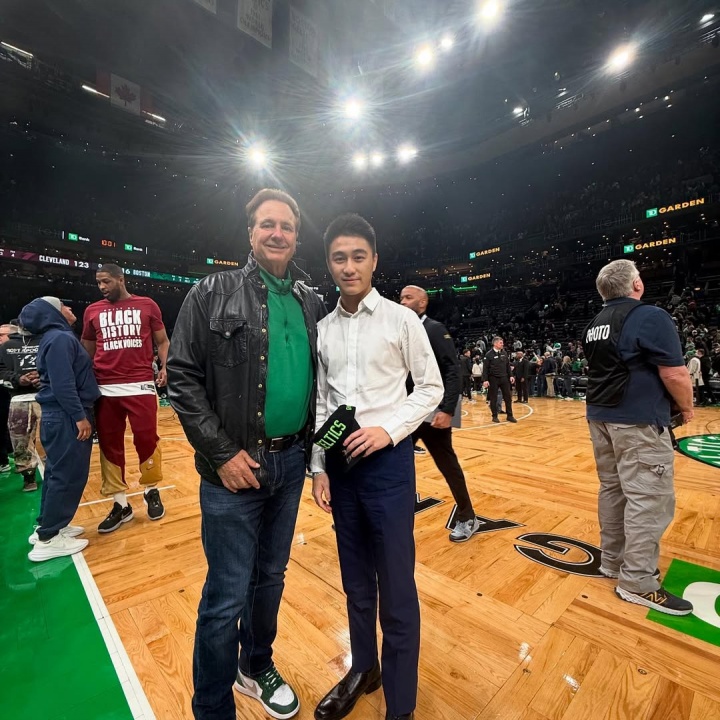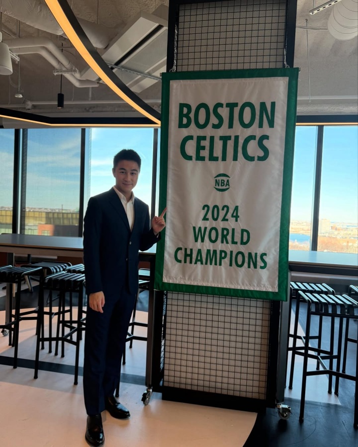 众所周知,何猷君在波士顿留学(就读麻省理工学院)多年,是凯尔特人的球迷,杰伦-布朗则是他最喜欢的球星。