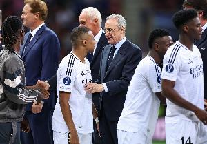 据悉,在被红牌罚下以后,姆巴佩显得有点士气低落。弗洛伦蒂诺和安切洛蒂非常关心法国人的情况,他们与球员进行了交流,向对方传达信心,希望他可以调整情绪,迎接本周对阵阿森纳的关键战役。