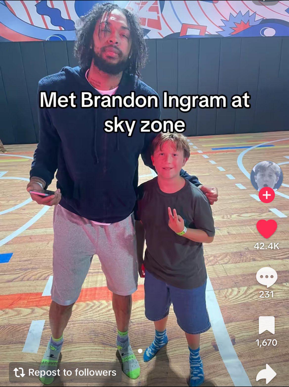 雷速体育6月16日讯 近日,有网友在TikTOK上晒出了与猛龙球星英格拉姆的合照。照片中,英格拉姆的头发散开,显得很乱,眼神惺忪。