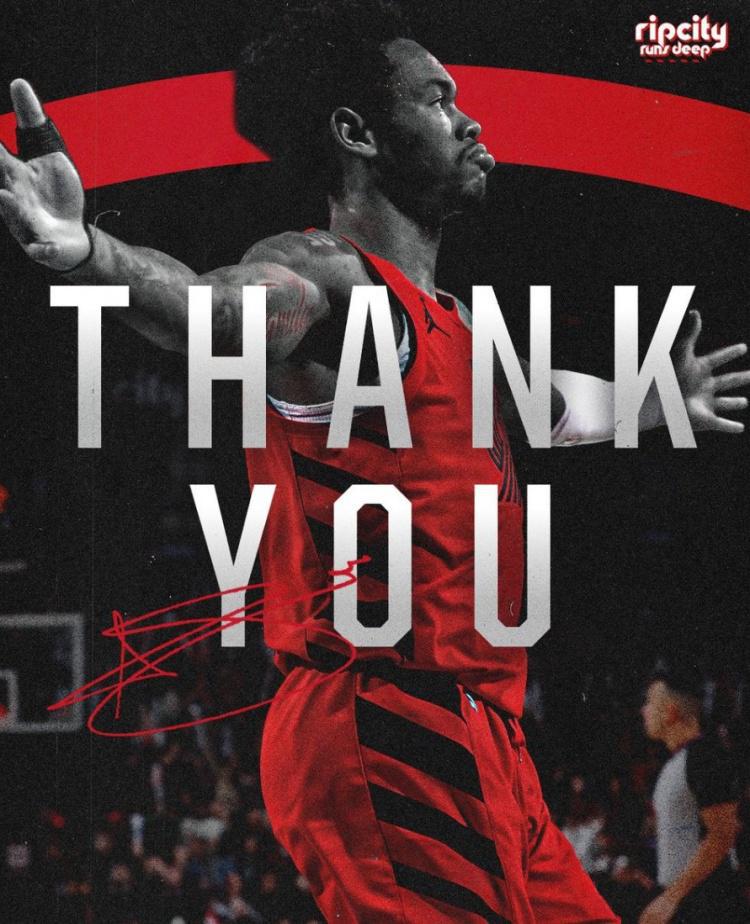 开拓者官方写道:“谢谢你所做的一切,1号(安芬尼-西蒙斯)。”